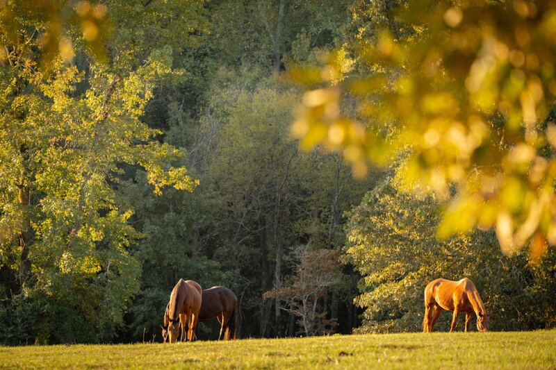 Blackjack Farms is nestled on eight-hundred acres. The main barn area boasts forty-six stalls, six pastures for group turnout, nine paddocks for private turnout, three outdoor arenas, one covered arena, and miles of trails. Additionally, the front of the property is home to our annex barn with large pastures and a corral area.